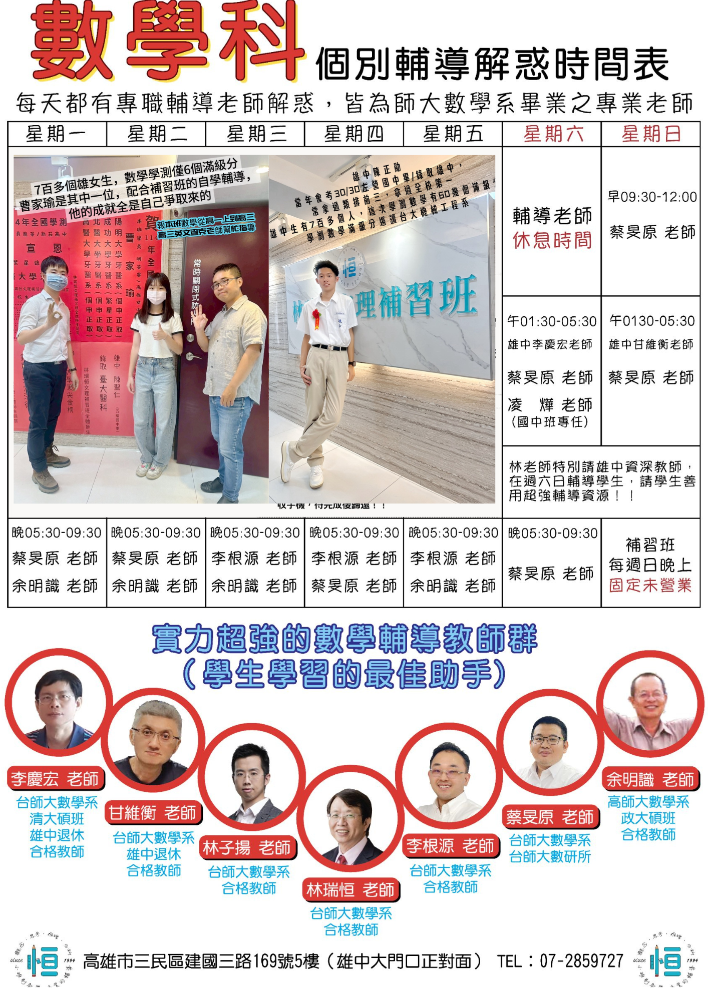 外縣市遠距[線上課程]請洽07-2859727洪主任&國文+國寫/英文含寫作/數學/物理/化學/生物各科皆有,歡迎報名試聽&升國中數學超修培訓班,每週六歡迎試聽&國三會考數學複習班,歡迎國三即時加入!!外縣市遠距[線上課程]請洽07-2859727洪主任&國文+國寫/英文含寫作/數學/物理/化學/生物各科皆有,歡迎報名試聽&升國中數學超修培訓班,每週六歡迎試聽&國三會考數學複習班,歡迎國三即時加入!!